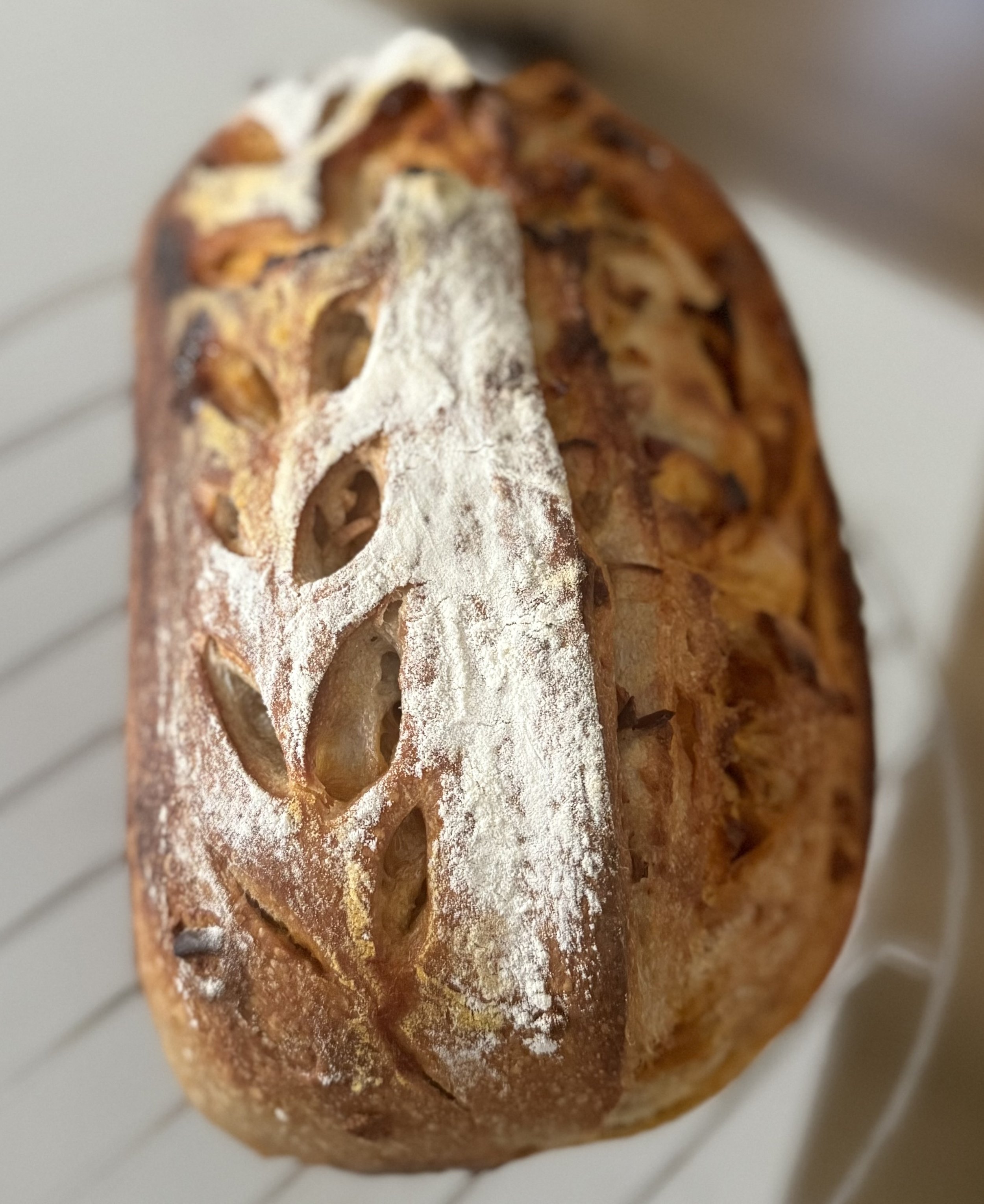 Sourdough made with caramel apple cider and apple chip and butterscotch chip inclusions. This was one of our September flavors of the month, and had to stay on for another month due to popular demand.